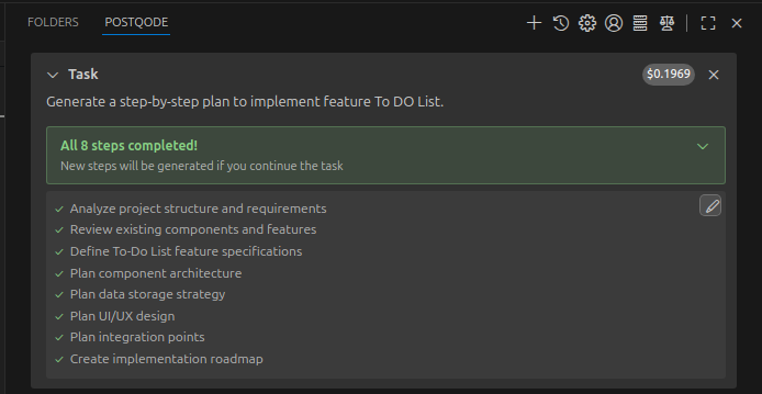 - PostQode will automatically start creating and managing todo lists