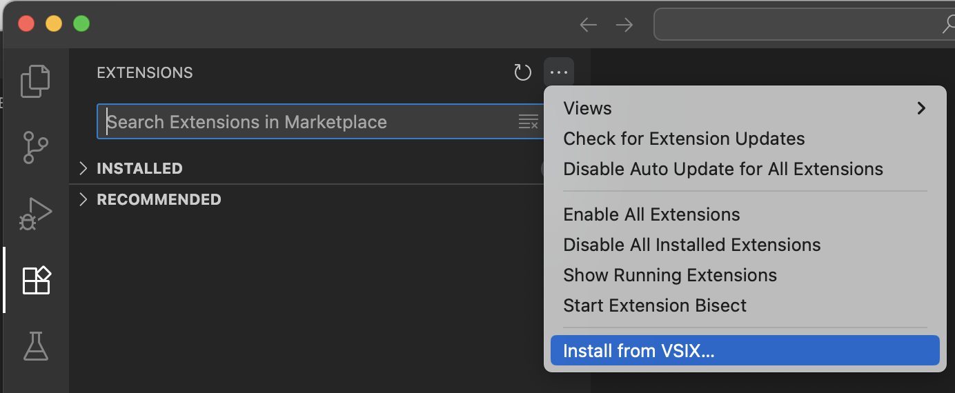 - Select "Install from VSIX..."