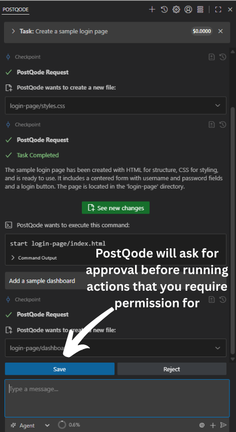 PostQode works iteratively. After each action, it waits for your feedback before proposing the next step. Continue this review-approve cycle until your task is complete.
